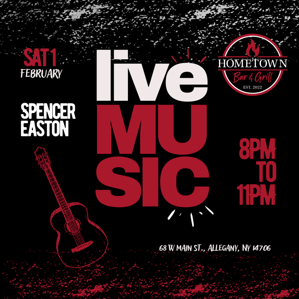 Country singer, Spencer Easton will be performing this Saturday from 8-11PM.
