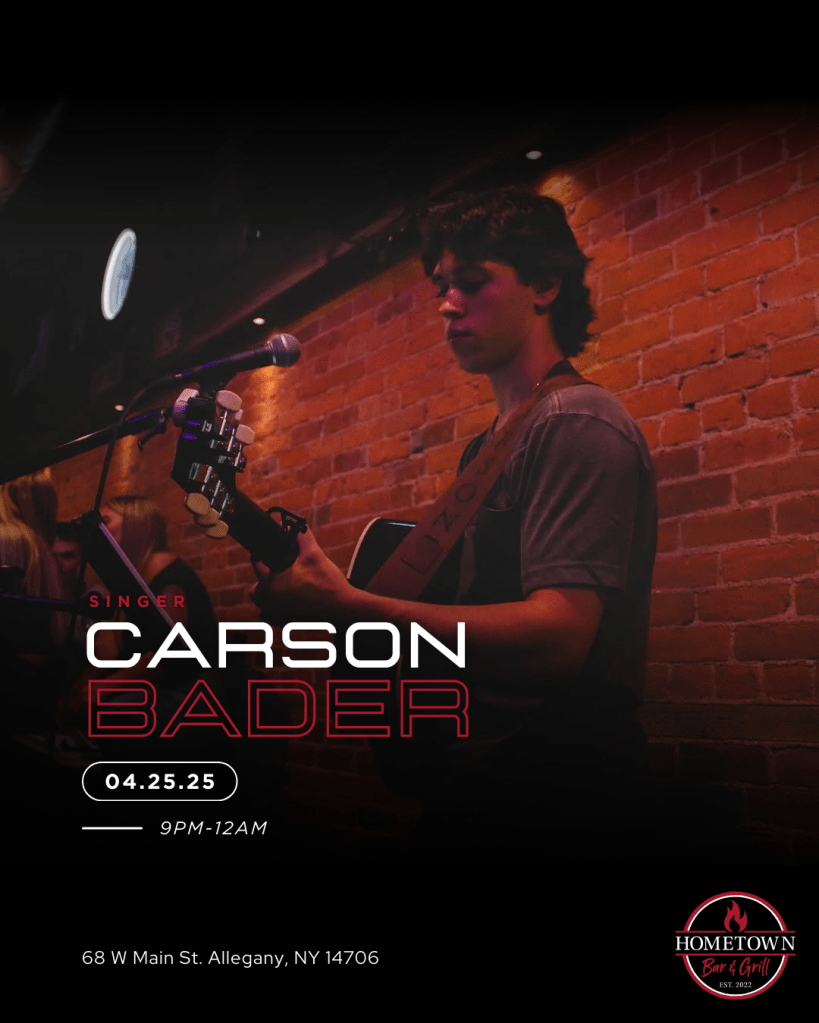 Live Music this Friday, 4/25! Carson will be performing from 9PM – Midnight.